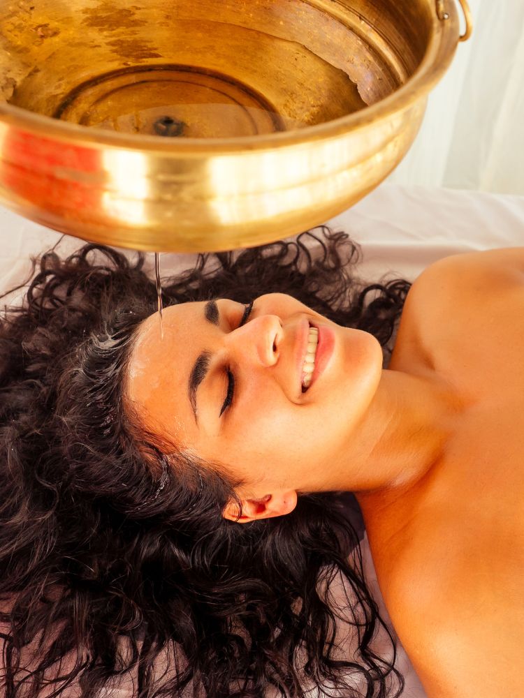 🔸 Shirodhara – Continuous stream of warm oil poured on the forehead to relieve stress, anxiety, and insomnia.